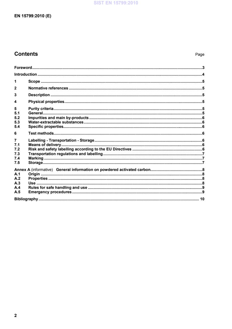 General information on powdered activated carbon.8A.1Origin .8A.2Properties .8A.3Use .8A.4Rules for safe handling and use .9A.5Emergency procedures .9Bibliography . 10 SIST EN 15799:2010