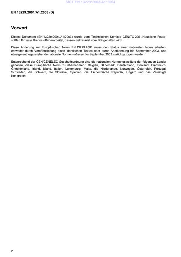 This amendment A1 modifies the European Standard EN 13229:2001; it was approved by CEN on 6 December 2002.