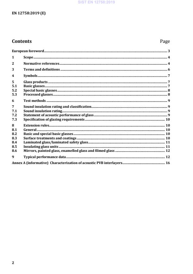 EN 12758:2019 is a standard published by the European Committee for Standardization (CEN). Its full title is "Glass in building - Glazing and airborne sound insulation - Product descriptions, determination of properties and extension rules". This standard covers: This European Standard assigns sound insulation values to all transparent, translucent and opaque glass products, described in the European Standards for basic, special basic or processed glass products, when intended to be used in glazed assemblies in buildings, and which exhibit properties of acoustic protection, either as a prime intention or as a supplementary characteristic. This document outlines the procedure, by which glass products may be rated, according to their acoustic performance which enables assessment of compliance with the acoustic requirements of buildings. Rigorous technical analysis of measurement data remains an option, but this standard is intended to enable the derivation of simpler indices of performance, which can be adopted with confidence by non-specialists. By adopting the principles of this standard the formulation of acoustic requirements in Building Codes and for product specification to satisfy particular needs for glazing is simplified. It is recognised that the acoustic test procedures contained within EN ISO 140-1 and EN ISO 140-3 relate only to glass panes and their combinations. Although the same principles should be followed as closely as possible, it is inevitable that some compromises are necessary, because of the bulkier construction of other glazing types, e.g. glass blocks, paver units, channel-shaped glass, structural glazing and structural sealant glazing. Guidelines on how to adapt the test procedures for these glazing types are offered in Clause 4. All the considerations of this standard relate to panes of glass/glazing alone. Incorporation of them into windows may cause changes in acoustic performance as a result of other influences, e.g. frame design, frame material, glazing material/method, mounting method, air tightness, etc. Measurements of the sound insulation of complete windows (glass and frame) may be undertaken to resolve such issues.