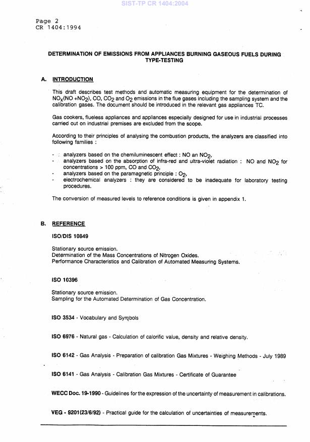 CR 1404:1994 is a technical report published by the European Committee for Standardization (CEN). Its full title is "Determination of emissions from appliances burning gaseous fuels during type-testing". This standard covers: No scope available