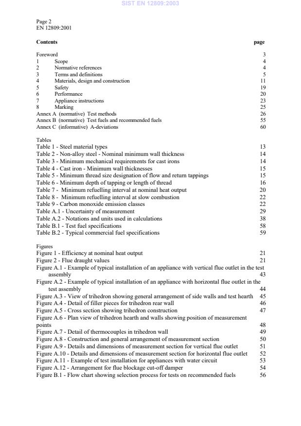 Page 2EN 12809:2001ContentspageForeword31Scope42 Normative references43Terms and definitions54Materials, design and construction115Safety196Performance207 Appliance instructions238 Marking25Annex A