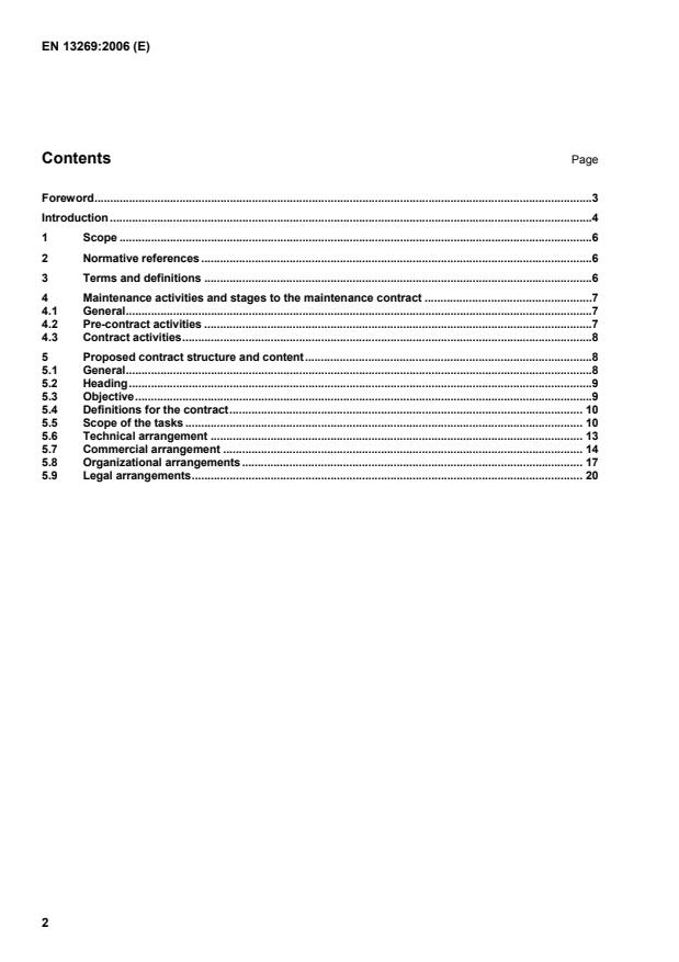 EN 13269:2006 is a standard published by the European Committee for Standardization (CEN). Its full title is "Maintenance - Guideline on preparation of maintenance contracts". This standard covers: This Standard provides guidance on the preparation of contracts for maintenance work. It can be applied to: cross-border as well as national company/maintenance contractor relationships; the whole range of maintenance services including planning, management and control in addition to maintenance operations; every type of item with the exception of computer software unless the software has to be maintained as an integral part of, and together with, technical equipment. It does not: provide standard forms for maintenance contracts; determine rights and obligations between company and maintenance contractor.