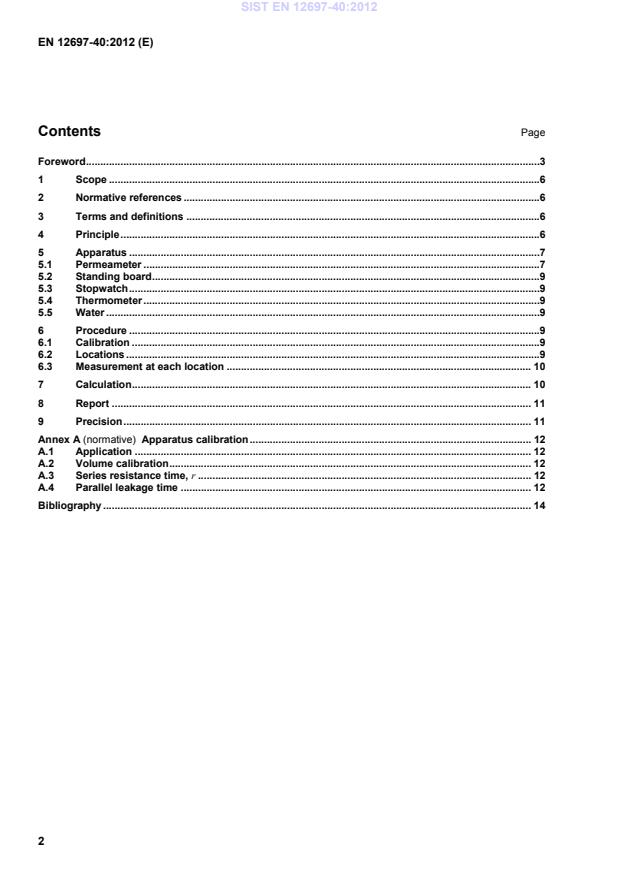 Apparatus calibration . 12A.1 Application . 12A.2 Volume calibration . 12A.3 Series resistance time, r . 12A.4 Parallel leakage time . 12Bibliography . 14 SIST EN 12697-40:2012