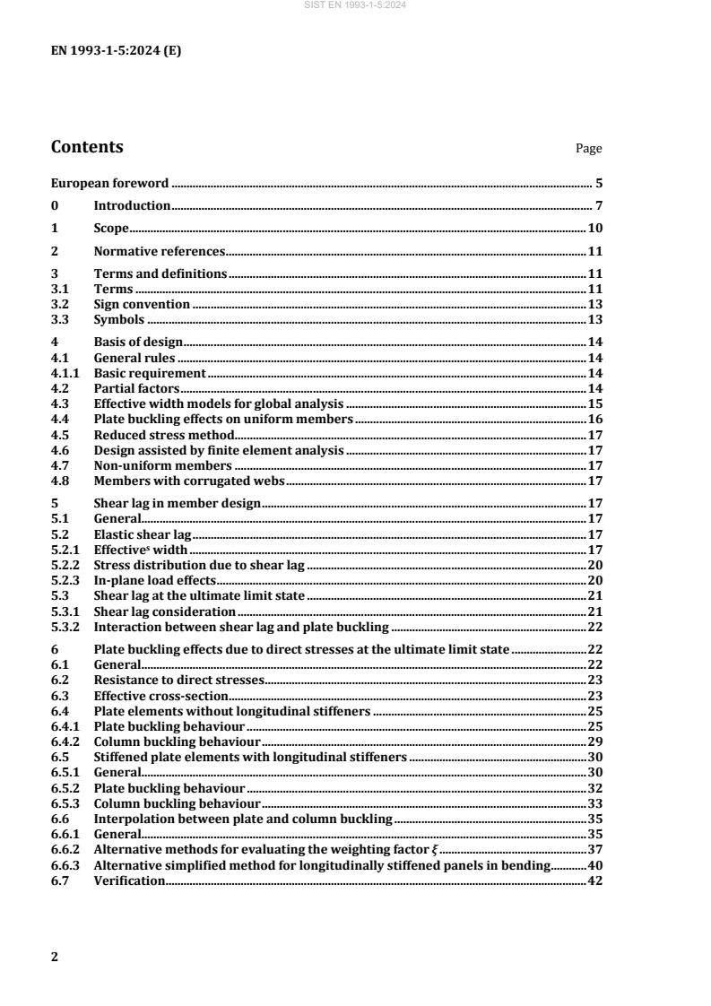 EN 1993-1-5:2024 - Eurocode 3: Design of steel structures - Part 1-5: Plated structural elements (CEN) provides design rules for stiffened and unstiffened nominally flat plates in steel structures that are subjected to in‑plane forces. The standard addresses non‑uniform stress distributions caused by shear lag, in‑plane load introduction and plate buckling, and sets conditions for when a plate can be treated as nominally flat (curvature criterion: r ≥ b²/t). Out‑of‑plane loading effects are outside the main scope.