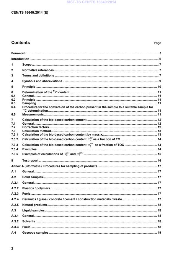 CEN/TS 16640:2014 is a technical specification published by the European Committee for Standardization (CEN). Its full title is "Bio-based products - Determination of the bio based carbon content of products using the radiocarbon method". This standard covers: This Technical Specification specifies a method for the determination of the bio-based carbon content in products, based on the 14C content measurement. It also specifies three test methods to be used for the determination of the 14C content from which the bio-based carbon content is calculated: - Method A: Liquid scintillation-counter method (LSC); - Method B: Beta-ionization (BI); - Method C: Accelerator mass spectrometry (AMS). The bio-based carbon content is expressed by a fraction of sample mass, as a fraction of the total carbon content or as a fraction of the total organic carbon content. This calculation method is applicable to any product containing organic carbon, including biocomposites. NOTE This Technical Specification does not provide the methodology for the calculation of the biomass content of a sample.