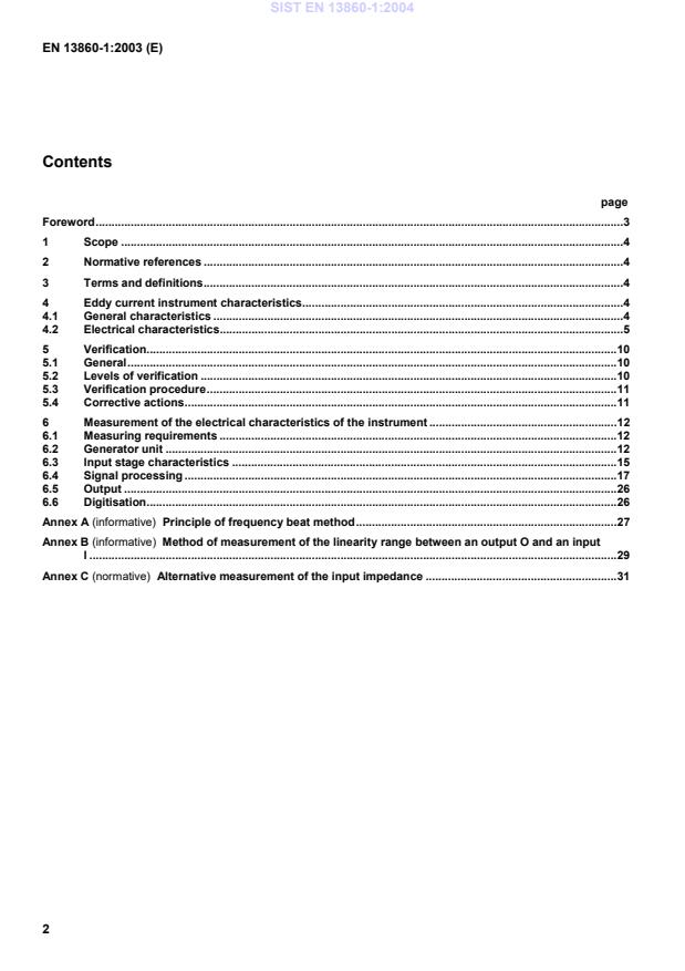 EN 13860-1:2003 is a standard published by the European Committee for Standardization (CEN). Its full title is "Non destructive testing - Eddy current examination - Equipment characteristics and verification - Part 1: Instrument characteristics and verification". This standard covers: The purpose of this standard is to identify the functional characteristics of a general purpose eddy current equipment and to provide methods for their measurement and verification. The evaluation of these characteristics will permit a well defined description and comparability of an eddy current equipment. By careful choice of the characteristics, a consistent and effective eddy current examination system can be designed for a specific application. Where accessories are used, these should be characterised using the principles of this standard. This standard does not give acceptance criteria for the characteristics.