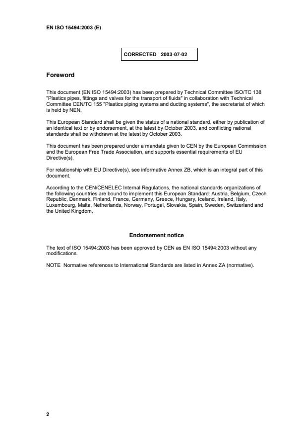 EN ISO 15494:2003 is classified under the following ICS (International Classification for Standards) categories: 23.040.01 - Pipeline components and pipelines in general. The ICS classification helps identify the subject area and facilitates finding related standards.