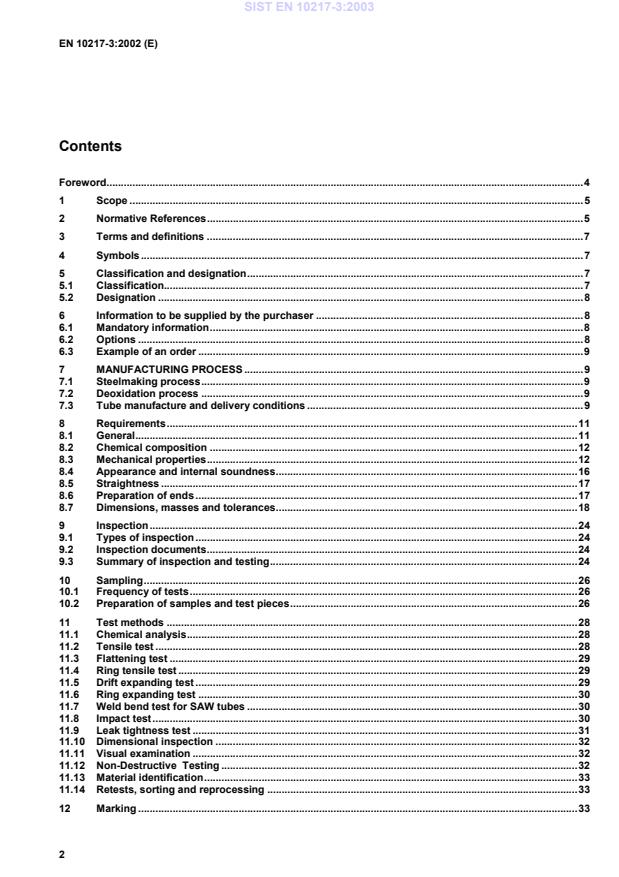 Testing.3211.13Material identification.3311.14Retests, sorting and reprocessing.3312Marking.33SIST EN 10217-3:2003