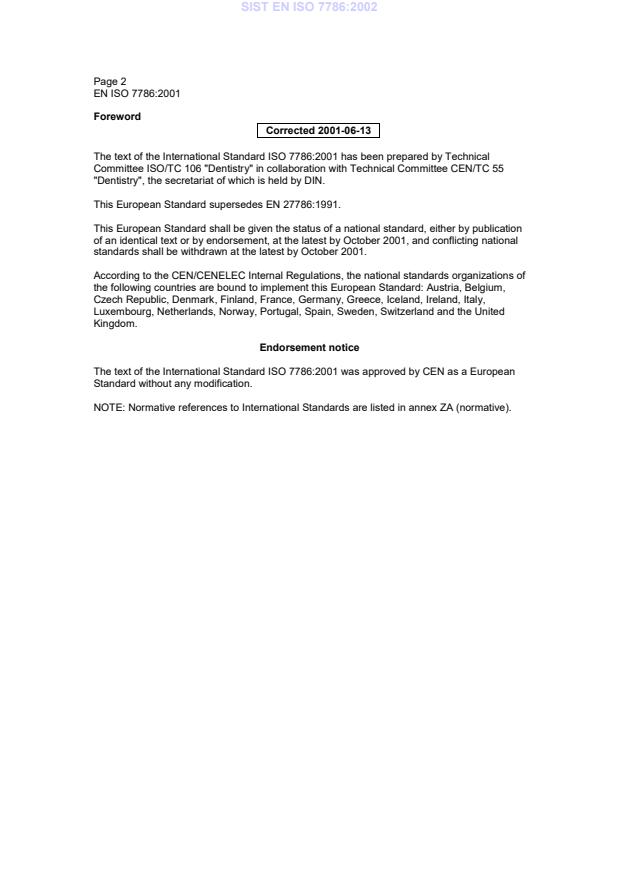 The text of the International Standard ISO 7786:2001 was approved by CEN as a European