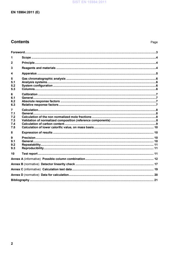 Ta evropski standard opredeljuje plinsko kromatografsko metodo za določevanje posameznih sestavin rafinerijskega kurilnega plina, iz katerih je mogoče izračunati vsebnost ogljika in kalorično vrednost. Ustrezni računski podatki so zajeti v standardu.
