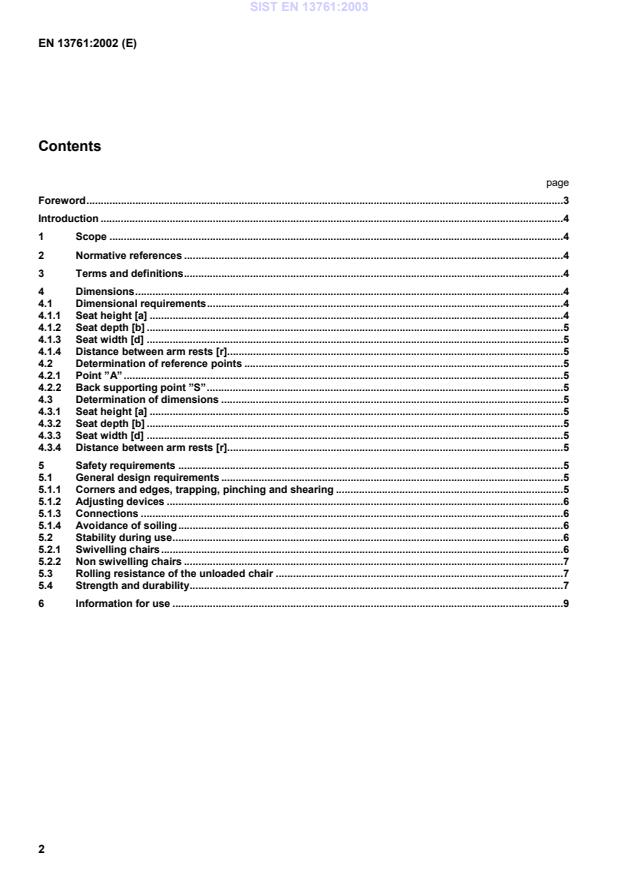 EN 13761:2002 is a standard published by the European Committee for Standardization (CEN). Its full title is "Office furniture - Visitors chairs". This standard covers: This EN specifies dimensions and safety requirements for visitors chairs.
