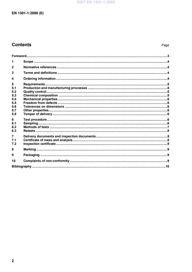 - Mechanical properties and testing: Mechanical properties are covered in EN 1301-2 or by agreement. Tensile testing is performed per EN 10002-1; sampling and test-piece preparation rules are defined to preserve representative results.