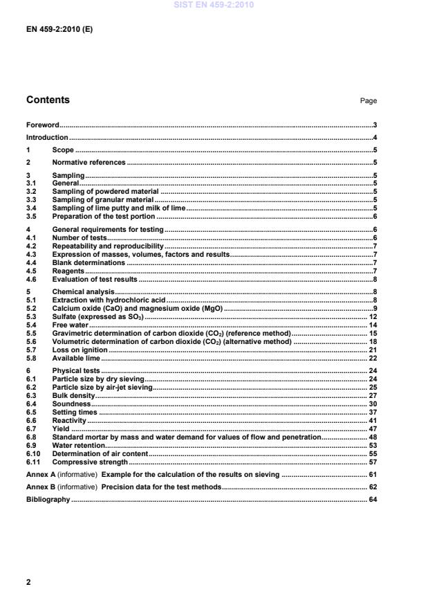 Precision data for the test methods . 62Bibliography . 64 SIST EN 459-2:2010