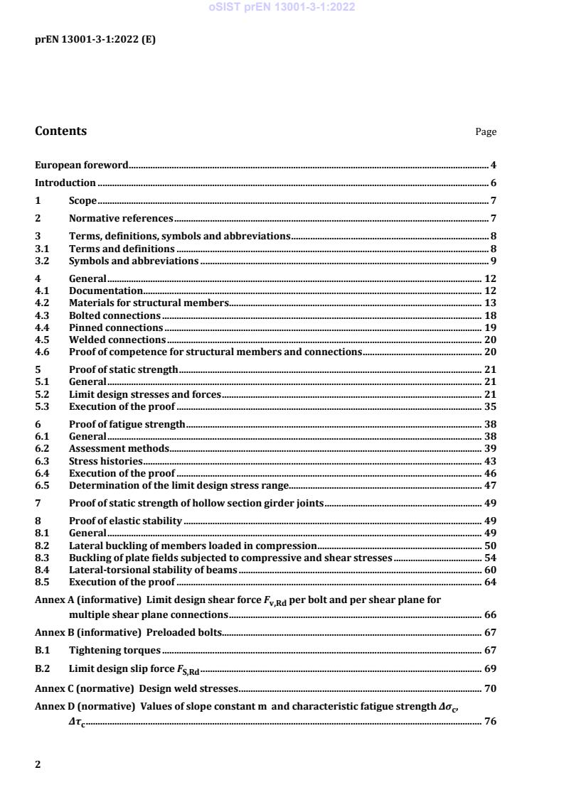 The standard also references harmonized norms (Eurocode 3, EN 13001-2) and relevant material and testing standards to ensure consistent application.
