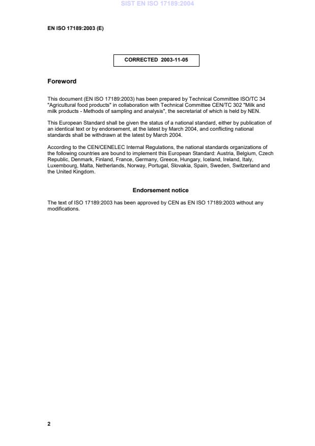 This document (EN ISO 17189:2003) has been prepared by Technical Committee ISO/TC 34