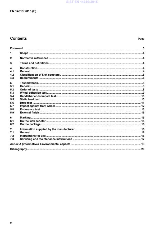 This European Standard applies to kick scooters which can only be propelled by the muscular activity of a user with a body mass of more than 20 kg and less than 100 kg. It specifies safety requirements, test methods, marking and information supplied by the manufacturer to reduce the risk of injuries to both third parties and the user during normal use. Kick scooters for use by users of less than 20 kg do not belong to the scope of this European Standard. They are toys. It should be noted that there are two types of scooters for the weight group 20 kg to 50 kg – those classified as sports equipment for use on public roads and path ways (this European Standard) and those classified as toys for domestic use (according to EN 71-1).