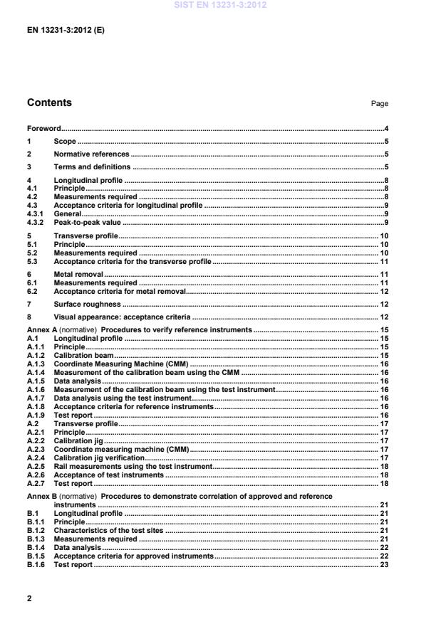 Procedures to demonstrate correlation of approved and reference instruments . 21B.1 Longitudinal profile . 21B.1.1 Principle . 21B.1.2 Characteristics of the test sites . 21B.1.3 Measurements required . 21B.1.4 Data analysis . 22B.1.5 Acceptance criteria for approved instruments . 22B.1.6 Test report . 23SIST EN 13231-3:2012