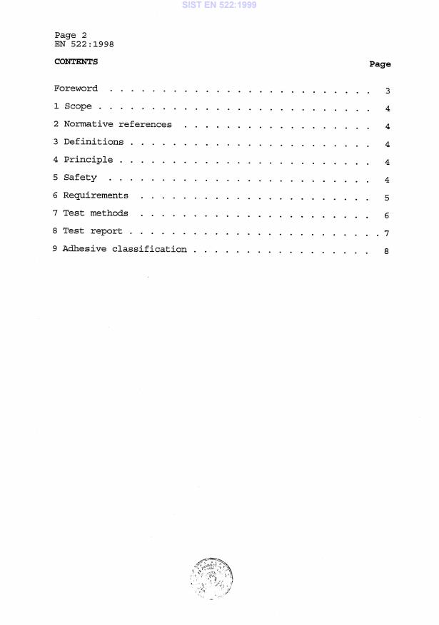 EN 522:1998 is a standard published by the European Committee for Standardization (CEN). Its full title is "Adhesives for leather and footwear materials - Bond strength - Minimum requirements and adhesive classification". This standard covers: This standard specifies a method for evaluating solvent based and dispersion adhesives intended for use for sole attachment. It specifies minimum requirements for some strength properties of bonds made with these adhesives and establishes an adhesive classification based on the results obtained with reference test materials representing types of leather, rubber or plastic materials often used as upper or bottom materials in footwear manufature.