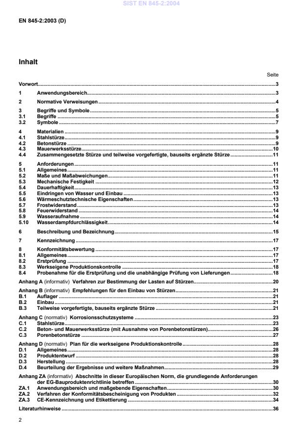 EN 845-2:2003 is a standard published by the European Committee for Standardization (CEN). Its full title is "Specification for ancillary components for masonry - Part 2: Lintels". This standard covers: This EN specifies requirements for prefabricated lintels for spans over clear openings up to a maximum of 4,5 m and made from steel, autoclaved aerated concrete, manufactured stone, concrete, prestressed concrete, fired clay units, calcium silicate units, natural stone units, or using a combination of these materials.