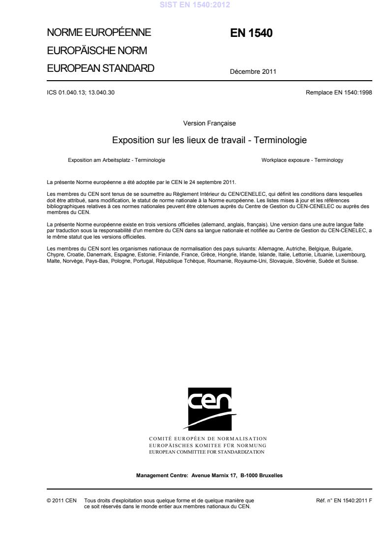 December 2011 ICS 01.040.13; 13.040.30 Supersedes EN 1540:1998English Version