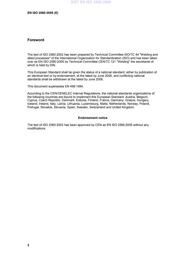EN ISO 2560:2005 has the following relationships with other standards: It is inter standard links to EN 499:1994, EN ISO 2560:2009. Understanding these relationships helps ensure you are using the most current and applicable version of the standard.