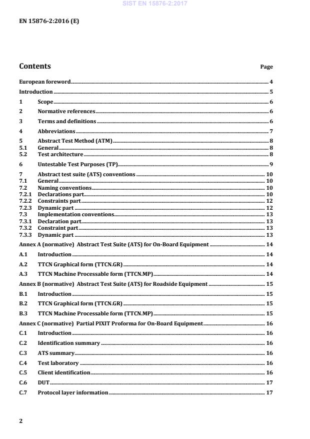 Partial PIXIT Proforma for On-Board Equipment . 16 C.1 Introduction . 16 C.2 Identification summary . 16 C.3 ATS summary . 16 C.4 Test laboratory . 16 C.5 Client identification . 16 C.6 DUT . 17 C.7 Protocol layer information . 17 SIST EN 15876-2:2017