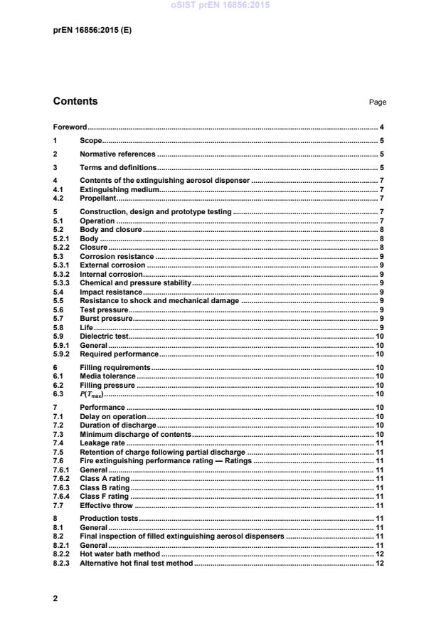 This draft standard is aligned with Directive 75/324/EEC (aerosol dispensers) and defines minimum performance criteria for extinguishing test fires of classes defined in EN 2: combinations of A, B and F. The products covered are not intended for gas (class C) or metal (class D) fires and are not a replacement for full EN 3 compliant portable fire extinguishers.