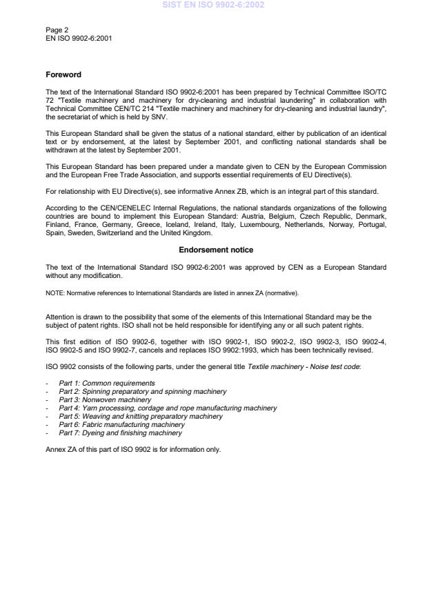 EN ISO 9902-6:2001 is classified under the following ICS (International Classification for Standards) categories: 17.140.20 - Noise emitted by machines and equipment; 59.120.01 - Textile machinery in general. The ICS classification helps identify the subject area and facilitates finding related standards.
