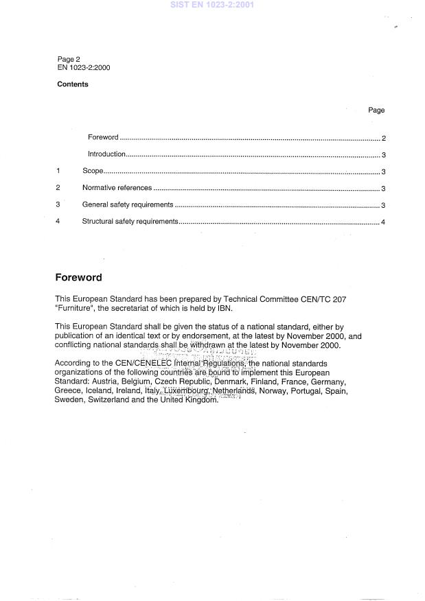 EN 1023-2:2000 is a standard published by the European Committee for Standardization (CEN). Its full title is "Office furniture - Screens - Part 2: Mechanical safety requirements". This standard covers: This part of EN 1023 specifies the mechanical safety requirements of office screens which are divided into general safety requirements and structural safety requirements.