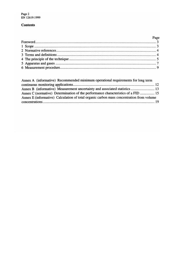 This European Standard specifies a set of minimum performance requirements for an instrument using flame ionisation detection, together with procedures for its calibration and operation, for the measurement of the mass concentration of total gaseous organic carbon (TOC) in stationary source combustion emissions. This European Standard is suitable for the measurements of low level gaseous or vapour phase TOC emissions such as those from municipal waste incinerators and hazardous Waste incinerators.