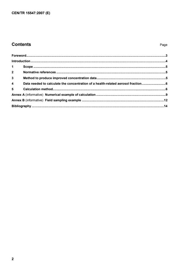 CEN/TR 15547:2007 is a technical report published by the European Committee for Standardization (CEN). Its full title is "Workplace atmospheres - Calculation of the health-related aerosol fraction concentration from the concentration measured by a sampler with known performance characteristics". This standard covers: This Technical Report specifies a method for calculating and expressing the relevant aerosol fraction concentration and its confidence interval, rather than the actually measured concentration. This can be done for any sampler satisfying EN 13205:2001, Annex A. The calculation method follows the procedure developed and described in EN 13205:2001, Annex A and Annex F. This Technical Report explains how to practically perform the calculation.