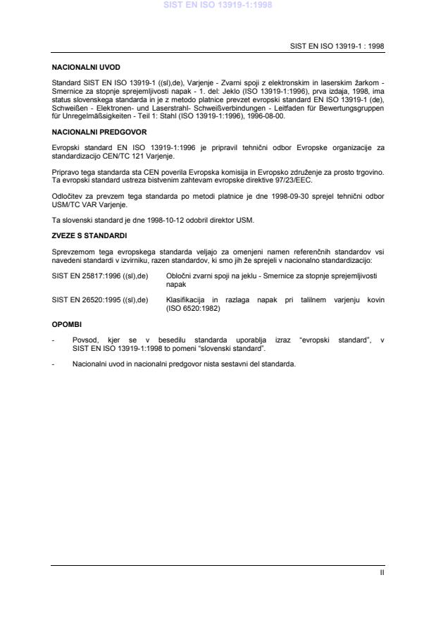 Varjenje - Zvarni spoji z elektronskim in laserskim žarkom - Smernice za stopnje sprejemljivosti napak - 1. del: Jeklo (ISO 13919-1:1996)