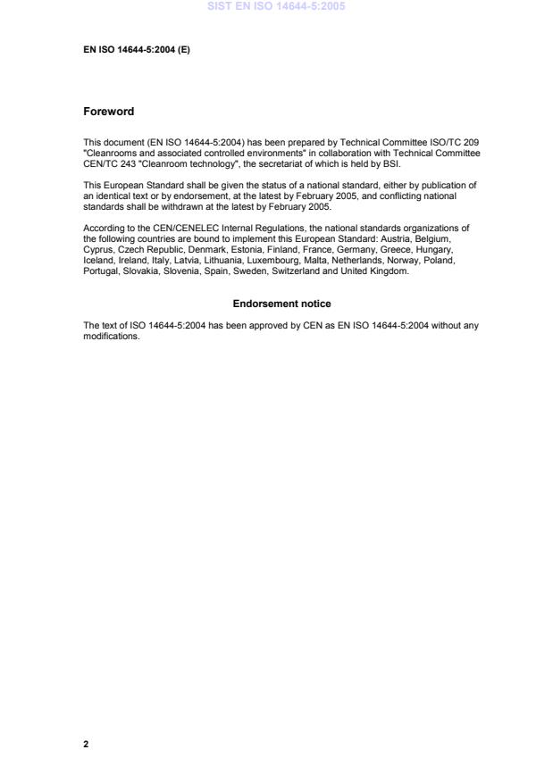 This document (EN ISO 14644-5:2004) has been prepared by Technical Committee ISO/TC 209