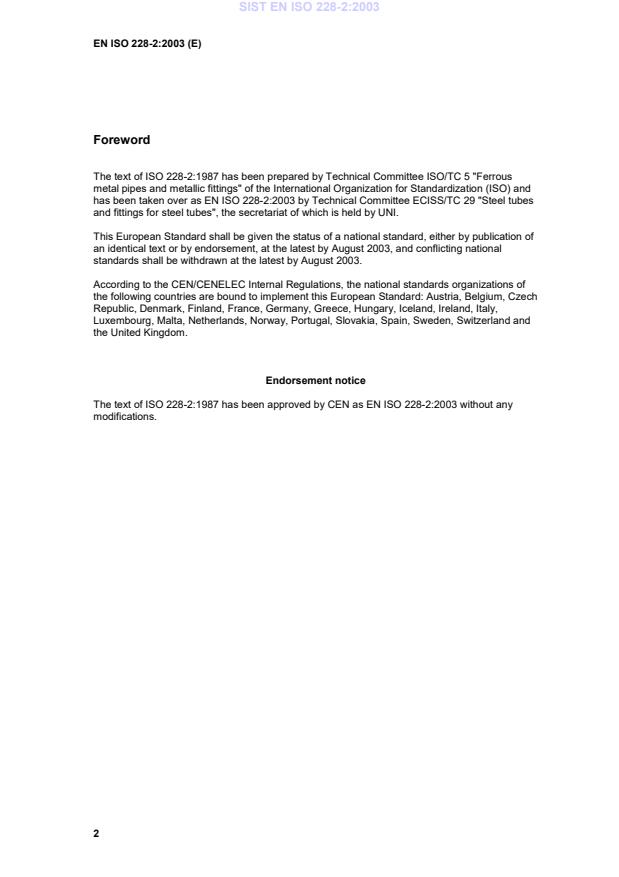 has been taken over as EN ISO 228-2:2003 by Technical Committee ECISS/TC 29 "Steel tubes