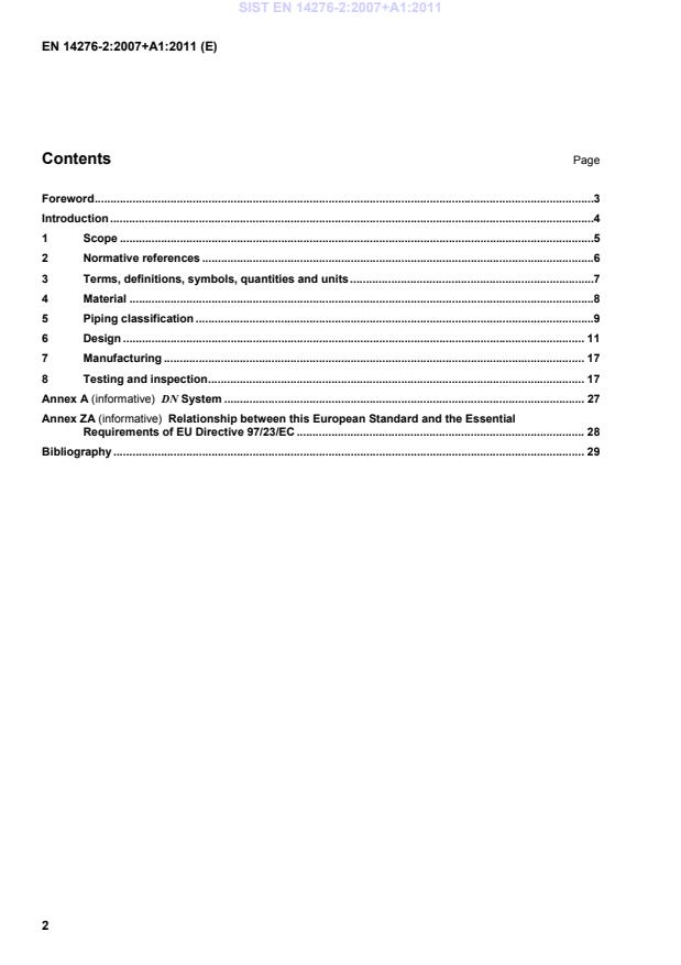 Relationship between this European Standard and the Essential Requirements of EU Directive 97/23/EC . 28Bibliography . 29 SIST EN 14276-2:2007+A1:2011