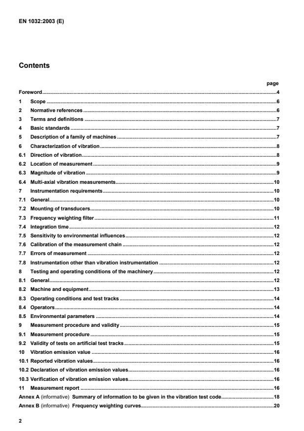 EN 1032:2003 is a standard published by the European Committee for Standardization (CEN). Its full title is "Mechanical vibration - Testing of mobile machinery in order to determine the vibration emission value". This standard covers: This European Standard specifies the determination of whole-body and hand-arm vibration emission at operator's position(s) during testing of mobile machinery. The purpose of this European Standard is to assist technical standardization committees responsible for specific types of machinery in preparing vibration test codes to ensure that such vibration test codes: - enable users to make comparisons and to check the declared vibration emission values; - are as homogeneous as possible with each individual test code having the same basic structure; etc.