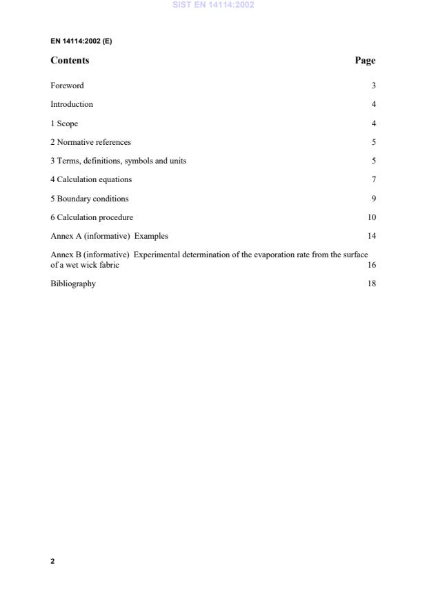 Experimental determination of the evaporation rate from the surfaceof a wet wick fabric16Bibliography18SIST EN 14114:2002