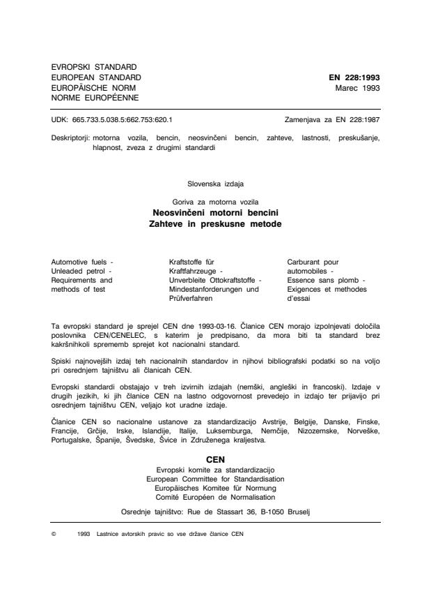 Evropski standard EN 228:1993 je pripravil tehni~ni odbor Evropske organizacije za