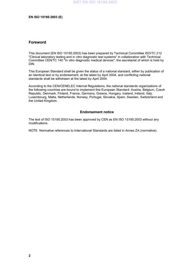 This document (EN ISO 15195:2003) has been prepared by Technical Committee ISO/TC 212