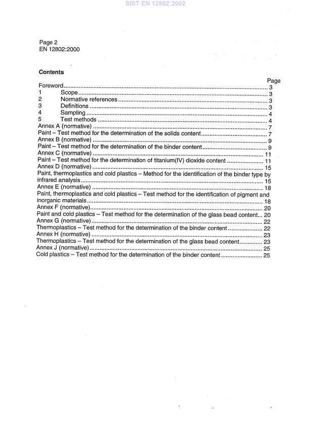 EN 12802:2000 is a standard published by the European Committee for Standardization (CEN). Its full title is "Road marking materials - Laboratory methods for identification". This standard covers: This European Standard describes laboratory methods for the identification of road marking materials used in horizontal signalization.