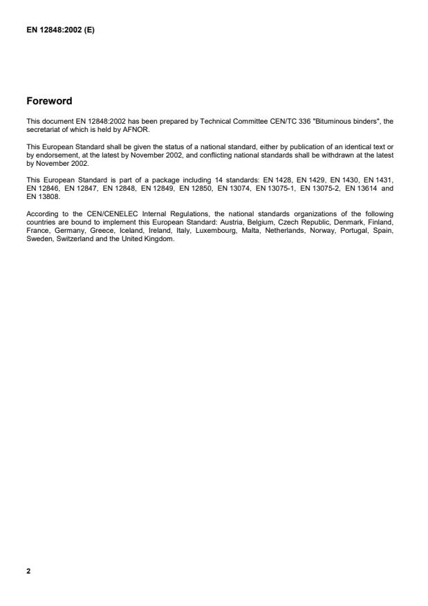 This document EN 12848:2002 has been prepared by Technical Committee CEN/TC 336 "Bituminous binders", the
