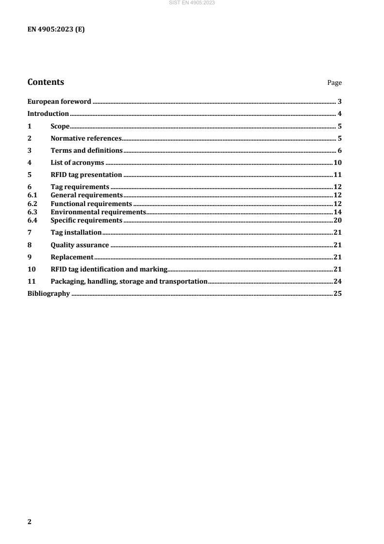 EN 4905:2023 - "Aerospace series - Passive UHF RFID for airborne use" is a European standard published by CEN that specifies requirements for newly manufactured passive UHF RFID tags intended for aeronautical use. The standard defines how passive UHF RFID tags (860–960 MHz) should be designed, validated and marked so they can be reliably read/written during ground operations while enduring the global flight environment. It does not cover readers/interrogators, active or battery-assisted tags, or tags intended for other frequency ranges.