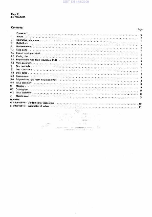 EN 448:1994 is a standard published by the European Committee for Standardization (CEN). Its full title is "Preinsulated bonded pipe systems for underground hot water networks - Fitting assemblies of steel service pipes, polyurethane thermal insulation and outer casing of polyethylene". This standard covers: This European Standard specifies requirements and test methods for fittings of prefabricated thermally insulated pipe-in-pipe assemblies, comprising a steel service fitting from DN 20 to DN 600, rigid polyurethane foam insulation and an outer casing of high density polyethylene. However the quality requirements can be applied for larger dimensions.