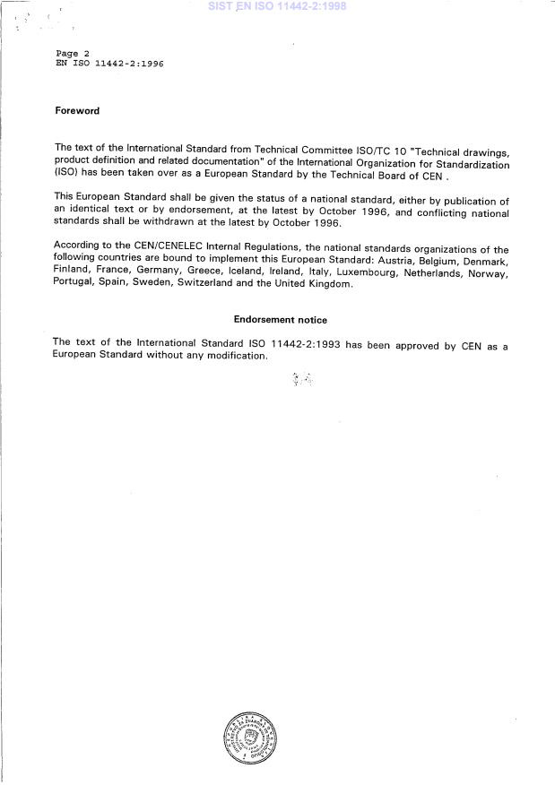 EN ISO 11442-2:1996 is classified under the following ICS (International Classification for Standards) categories: 01.110 - Technical product documentation. The ICS classification helps identify the subject area and facilitates finding related standards.