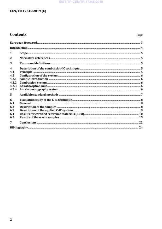 CEN/TR 17345:2019 is a technical report published by the European Committee for Standardization (CEN). Its full title is "Waste - State-of-the-art document - Halogens and sulfur by oxidative pyrohydrolytic combustion followed by ion chromatography detection". This standard covers: In the framework of EU Directive 99/31/EC [1] and EU Directive 2000/76/EC [2] halogens and sulfur need to be determined on waste samples. The implementation of the combustion-IC technique would allow in one single run the combustion of the sample followed by the determination of the halogens and sulfur with ion chromatography. Moreover, this instrument may be provided with a sample carrousel for both solids and liquids, allowing an automation of these type of analyses. Recent developments of the C-IC technology have made this technique interesting for the determination of halogens and sulfur in waste samples. Therefore, a document on the current progress of the C-IC technology was prepared, including the evaluation of the performance of different commercially available systems and the presentation of analytical results obtained on certified reference materials and waste samples.