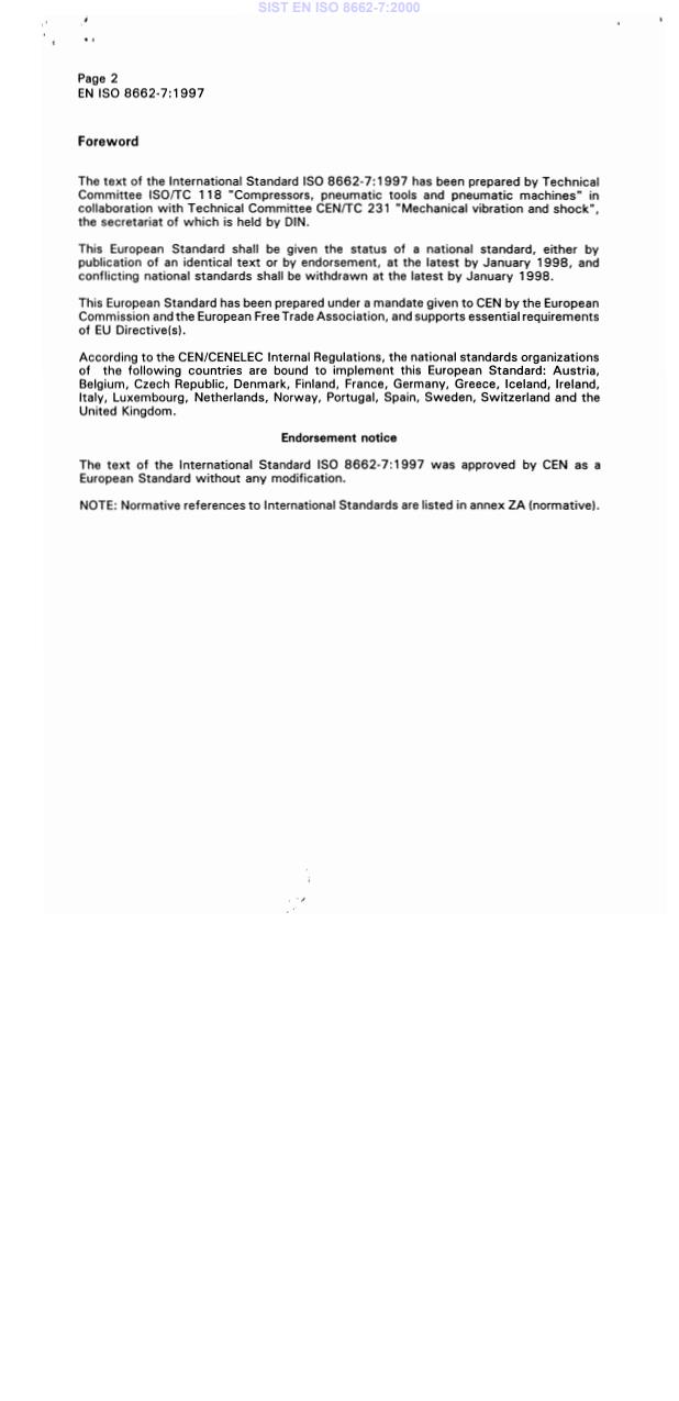 EN ISO 8662-7:1997 is a standard published by the European Committee for Standardization (CEN). Its full title is "Hand-held portable power tools - Measurement of vibrations at the handle - Part 7: Wrenches, screwdrivers and nut runners with impact, impulse or ratchet action (ISO 8662-7:1997)". This standard covers: This part of iso 8662 specifies a laboratory method for measuring vibration et the handles of wrenches, screwdrivers and nut runners with impact, impulse, rapping or ratchet action. It is a type-test procedure for establishing the vibration value at the handles of the power tools when operating on a specified load. This part of ISO 8662 mainly covers power tools with 6.3 mm to 40 mm (1/4 in to 1 1/2 in) male or female square-drive output shafts: other drive geometries are also included. One-shot tools and stall-torque-type ratched wrenches are excluded from this part of ISO 8662. The power tools covered by this part of ISO 8662 may be pneumatically or hydraulically driven. It is intended that the results be used to compare different power tools or different models of the same power tool. With the operation specified for the power tools, the values obtained will give an indication of those found in real work situations when the power tool and the head of the fastener are well aligned.