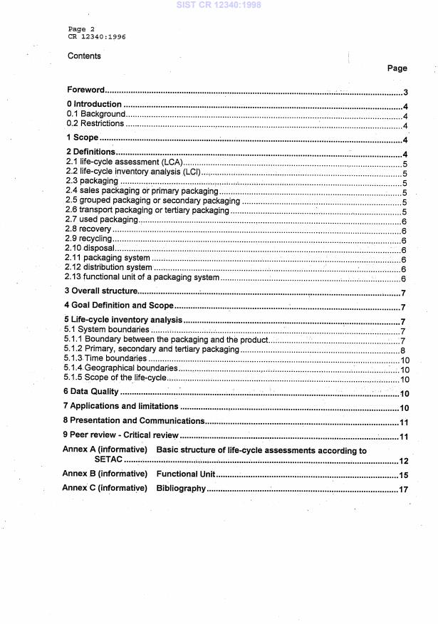 Keywords: packaging, life‑cycle inventory, LCI, LCA, packaging systems, CR 12340:1996, CEN, packaging life cycle, inventory analysis.