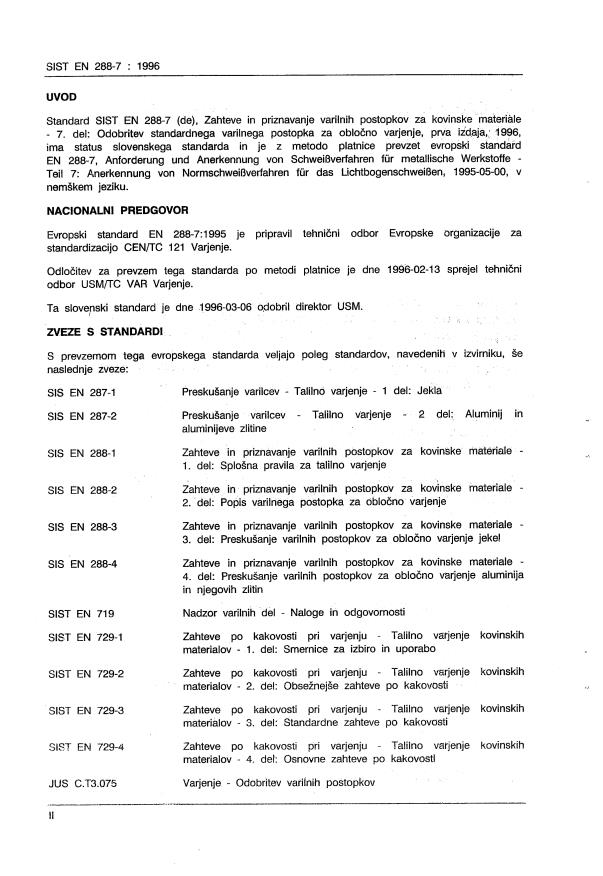 Popis in odobritev varilnih postopkov za kovinske materiale - 7. del: Odobritev standardnega varilnega postopka za obločno varjenje