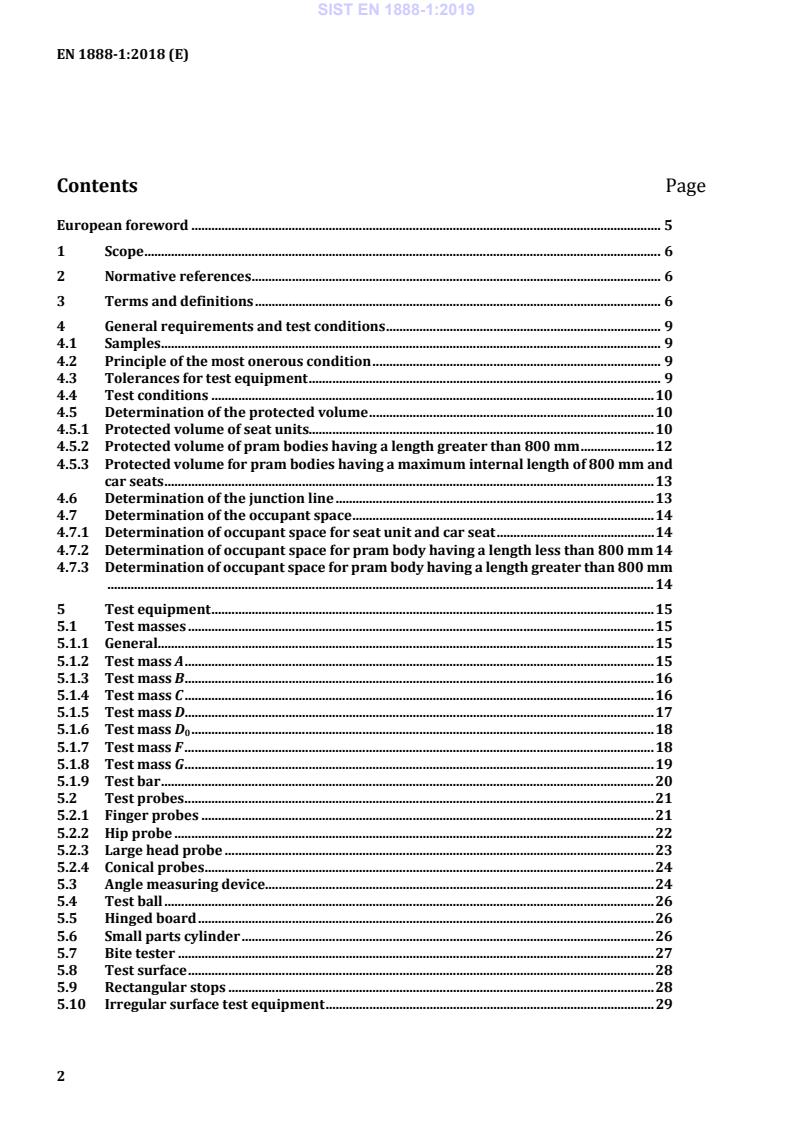 t Ů s {ä Attention is drawn to the possibility that some of the elements of this document may be the subject of patent rights. CEN shall not be held responsible for identifying any or all such patent rights. This document supersedes EN 1888:2012. In comparison with this EN 1888:2012, the significant technical changes relate to the following issues: a) chemical hazards; b) entrapment hazards; c) hazards from moving parts; d) entanglement hazards; e) parking device test method; f) stability of the vehicle; g) introduction of an informative Annex E giving relevant translations for warning sentences; h) introduction of an informative Annex D giving information on the assessment of moving parts of canopies; i) introduction of an informative Annex G giving information on the arrangement of approval marks for car seats. In November 2014, the European Working Group decided to split EN 1888 into different parts to clearly treat in a different way, new products or new functions of wheeled child conveyances. EN 1888 is currently composed with the following parts: — EN 1888-1, Child care articles — Wheeled child conveyances — Part 1: Pushchairs and prams; — EN 1888-2, Child care articles — Wheeled child conveyances — Part 2: Pushchairs for children above 15 kg up to 22 kg. EN 1888 therefore becomes EN 1888-1 and is only applicable to pushchairs and prams. It will be used as a reference in future parts. According to the CEN-CENELEC Internal Regulations, the national standards organisations of the following countries are bound to implement this European Standard: Austria, Belgium, Bulgaria, Croatia, Cyprus, Czech Republic, Denmark, Estonia, Finland, Former Yugoslav Republic of Macedonia, France, Germany, Greece, Hungary, Iceland, Ireland, Italy, Latvia, Lithuania, Luxembourg, Malta, Netherlands, Norway, Poland, Portugal, Romania, Serbia, Slovakia, Slovenia, Spain, Sweden, Switzerland, Turkey and the United Kingdom. SIST EN 1888-1:2019