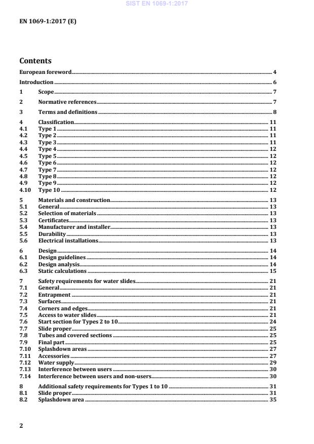 2.2”. 5.4 Manufacturer and installer The manufacturer and the installer shall ensure that persons engaged in the construction and the installation of the water slide are competent to carry out the work, and that welders are suitably qualified and accepted according to EN ISO 9606-1. Any assembling, modification, adjustment or alteration of parts shall only be done by persons with appropriate experience and skills. 5.5 Durability The designer shall specify the method of protection or frequency of inspection. All components shall be protected to minimize degradation caused by corrosion or rot by an approved method. The quality of protection shall depend on the use of the components. Where hollow section structural steel is used, internal corrosion shall be considered. 5.6 Electrical installations The relevant national and European regulations for electrical installations in and at buildings (e.g. swimming pool, swimming pool surround) apply. NOTE See HD 60364–7-702. SIST EN 1069-1:2017